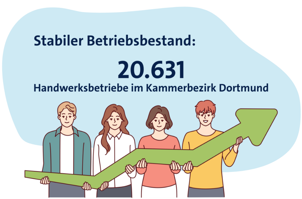 Kammerbezirk. „Der Betriebsbestand im Handwerk hat sich im Kammerbezirk zum Jahresende 2025 insgesamt weitgehend stabil gezeigt. Gleichzeitig weisen einzelne Regionen und Gewerke teils deutliche Zu- oder Abnahmen auf, die auf konjunkturelle und strukturelle Entwicklungen hinweisen“, stellt Berthold Schröder, Präsident der Handwerkskammer Dortmund fest.