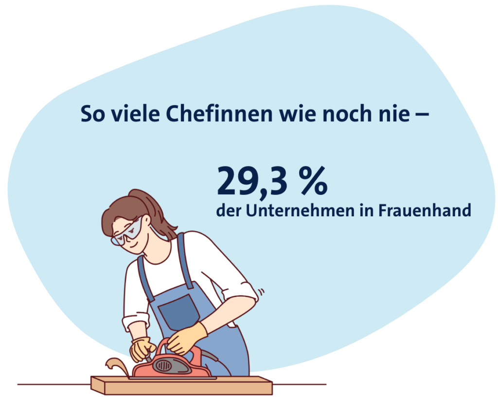 Zum Jahresende lag der Anteil von Frauen als Chefinnen im Handwerk bei 29,3 Prozent (Vorjahr: 28,7 Prozent). Damit waren 6.045 von insgesamt 20.631 Unternehmen in Frauenhand.
