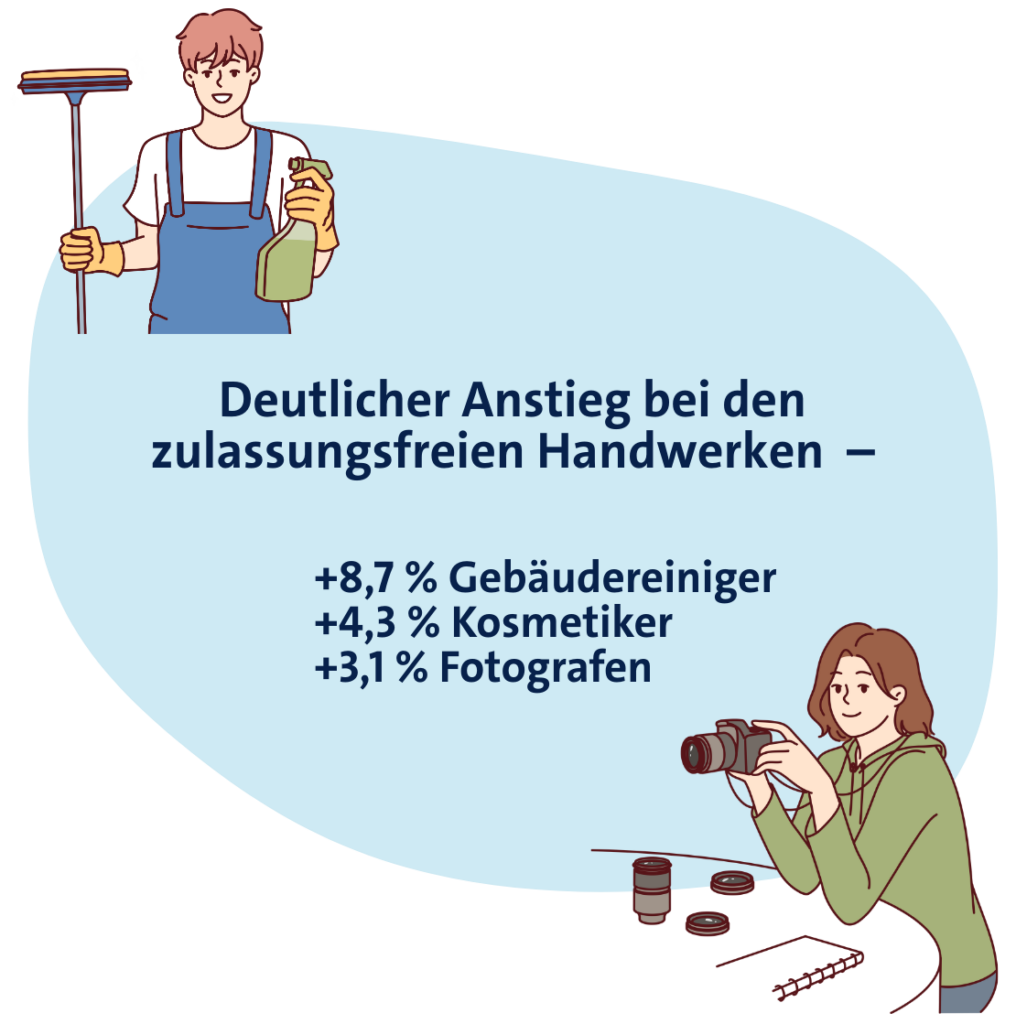 In den zulassungsfreien Handwerken trugen insbesondere drei Bereiche zum Anstieg bei: